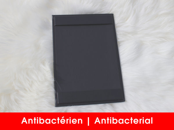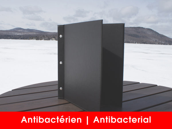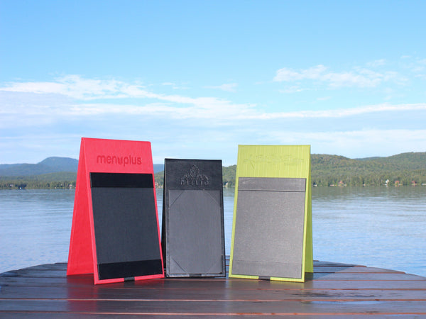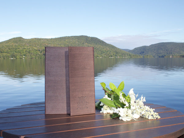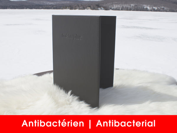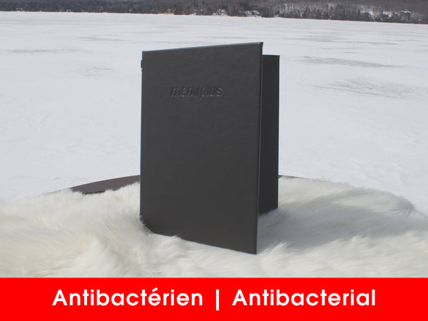 Nos menus avec couverture rigide sont durables et résistants. De plus, il est possible d’ajouter votre logo avec ou sans couleur. Pour un effet stylé, sélectionnez l’option gaufrage.